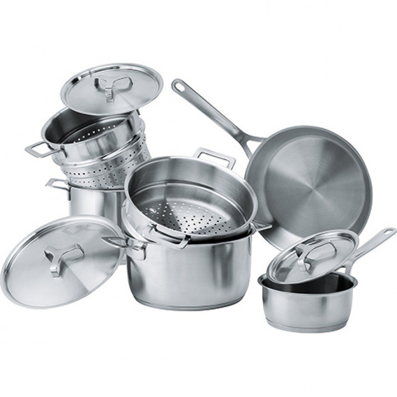 Setul contine NOUA articole si este compatibil cu plitele pe inductie, vitroceramice si gaz.