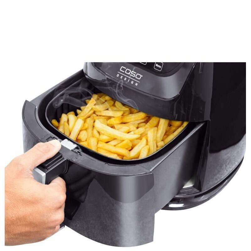 Friteuza cu aer cald Caso Germany, AF 255, fara ulei, capacitate 3 litri, 4 programe automate, temperatura ajustabila 60-200°C, incalzire rapida, timer, semnal acustic, senzor touch, display LED, silentios, usor de curatat, negru