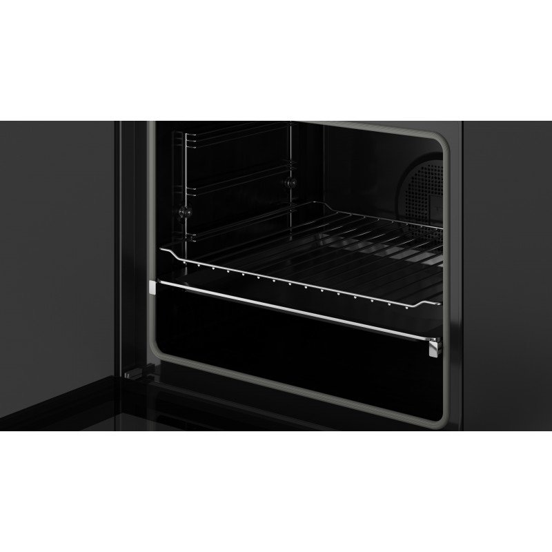 In interiorul cuptorului sunt 5 trepte de gatit, precum si ghidaje telescopice cu ele nu iti poate fi frica sa scada tava de copt cand o scoti pentru a adauga ceva sau a face ajustari la preparat. Puteți selecta parametrii de funcționare doriti folosind un programator electronic și poate fi blocat dacă în casă sunt copii care pot confunda dispozitivul cu o jucărie interesantă cu o grămadă de butoane, astfel încât nu vor putea modifica setările și strica vasul care se pregateste.