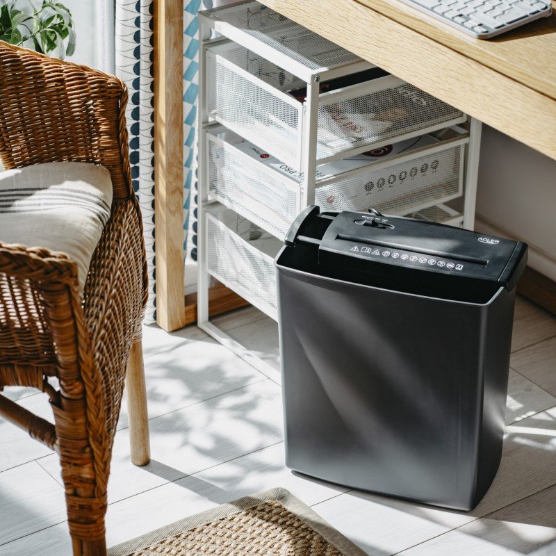 Protect your personal and business data with the practical and compact Adler AD 1040 paper shredder. This device is ideal for home users and small offices who need a simple yet effective solution for shredding paper. One of its standout features is the ability to fit on various types of waste bins, offering great flexibility and convenience.