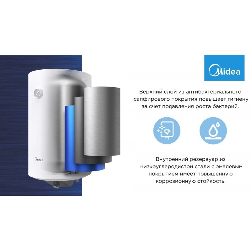 Boilerul Midea cilindric este un boiler electric vertical destinat prepararii apei calde menajere, fiind un produs innovator datorita noii tehnologii MegaWater oferind cu pana la 18% mai multa apa calda menajera, calitatea acesteia fiind mult imbunatatita.