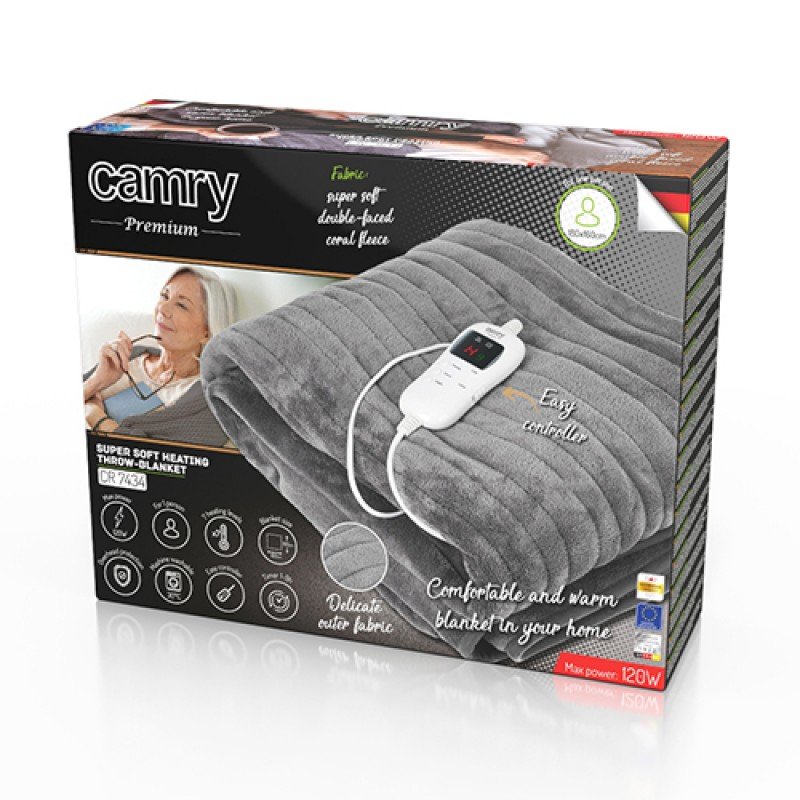 Etichete: Patura cu incalzire electrica Camry CR 7434, 180 х 160 cm, 7 nivele de temperatura, timer 1-9 ore, 120W, SUPER SOFT