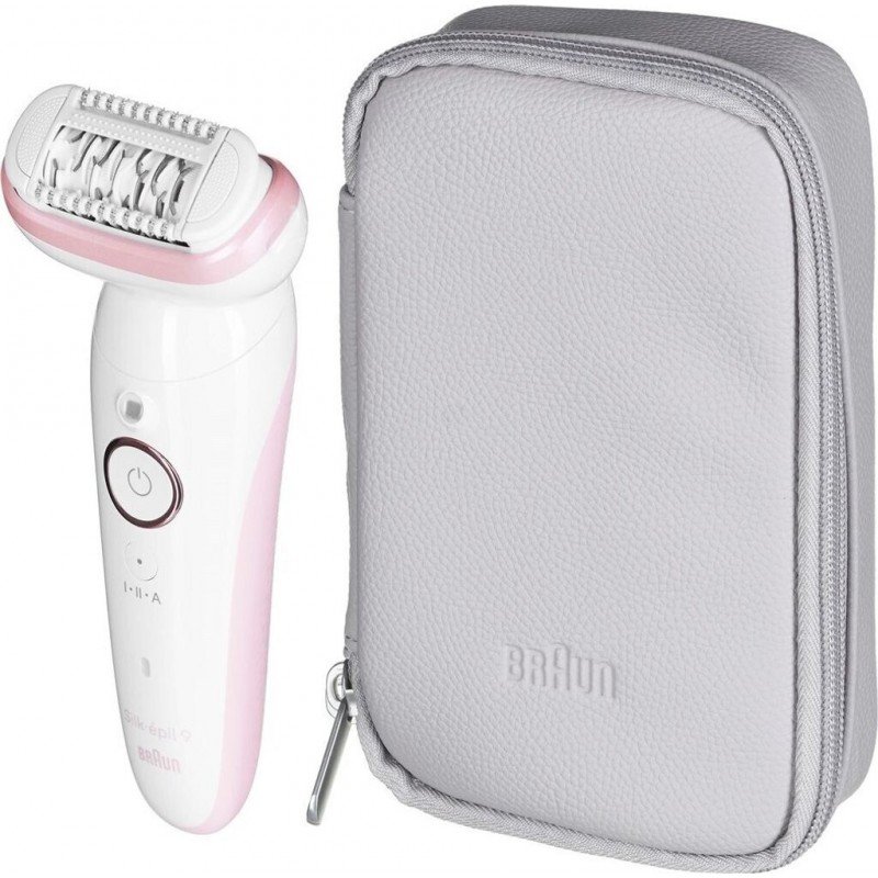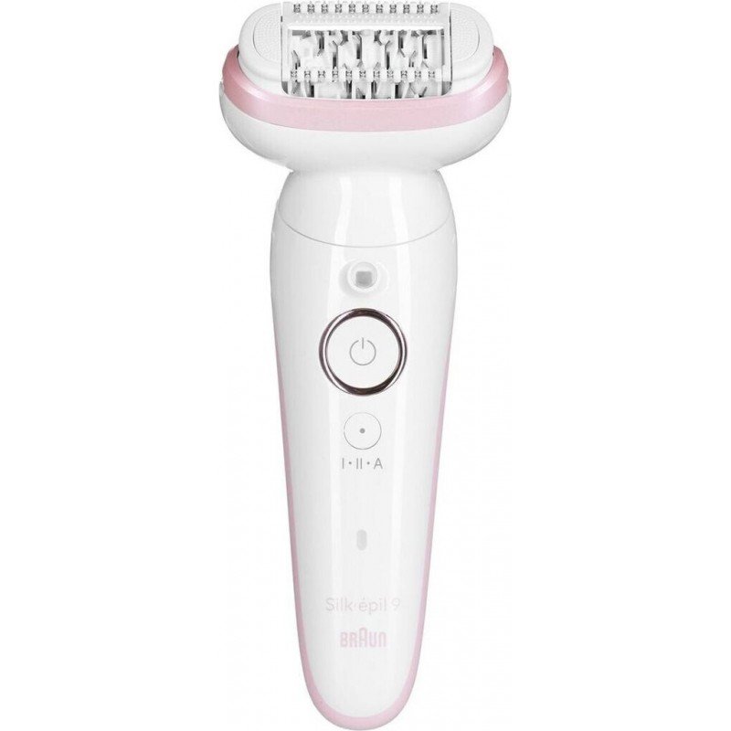 Epilator Braun Silk-épil 9 9-000 Wet & Dry, MicroGrip, Smart Light, 2 viteze, 40 pensete, Geanta de voiaj, Alb/Roz