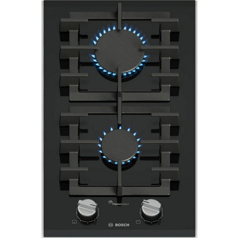 Plita incorporabila Bosch PRB3A6I40, 2 arzatoare, Flame select, 30 cm, Sticla neagra