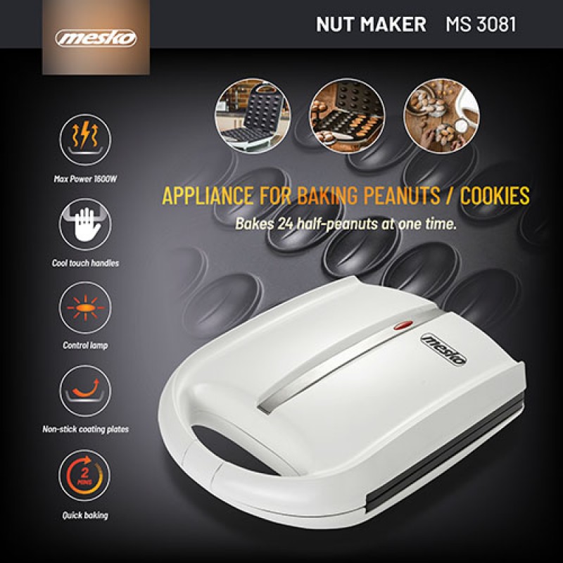 Etichete: Aparat de vafe in forma de nuci Mesko MS 3081, invelis antiaderent, 1600 W