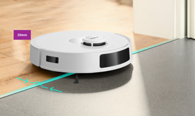 Cu functia Threshold Navigation, Spotless trece fara efort peste praguri si usi, asigurand tranzitii line intre camere. Poate gestiona praguri de pana la 20 mm, mentinand o curatare continua si eficienta, fara interventia ta.