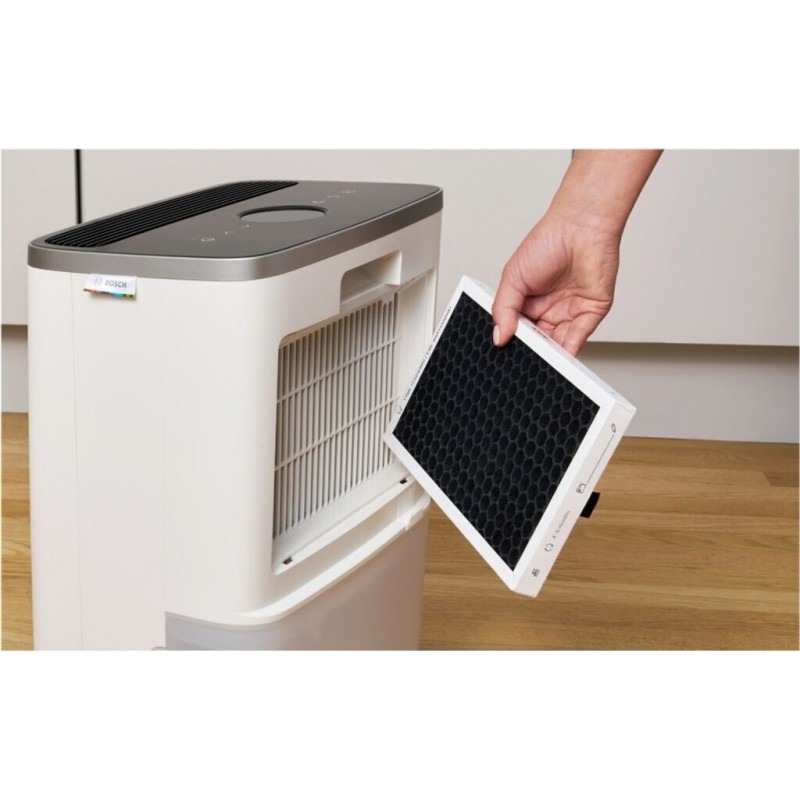 Pentru o calitate superioara a aerului, acest dezumidificator este compatibil cu filtrul 2-în-1 HEPA + carbune activ (disponibil separat), care contribuie la eliminarea impuritatilor din aer: