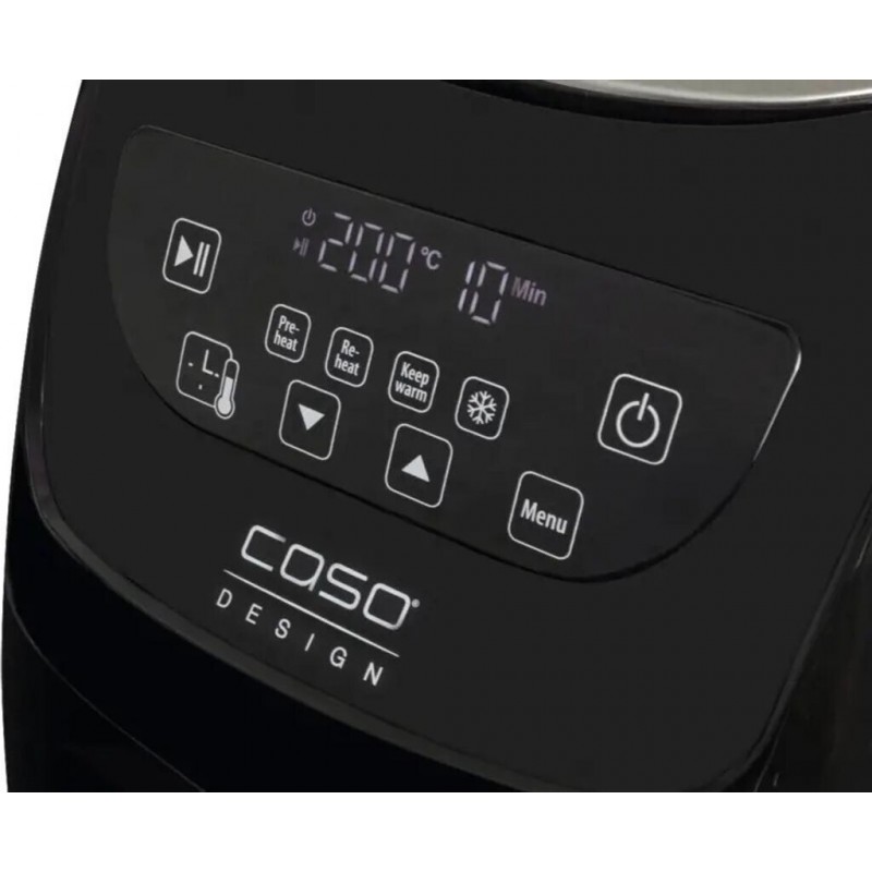 Friteuza cu aer cald Caso Germany, AF 255, fara ulei, capacitate 3 litri, 4 programe automate, temperatura ajustabila 60-200°C, incalzire rapida, timer, semnal acustic, senzor touch, display LED, silentios, usor de curatat, negru