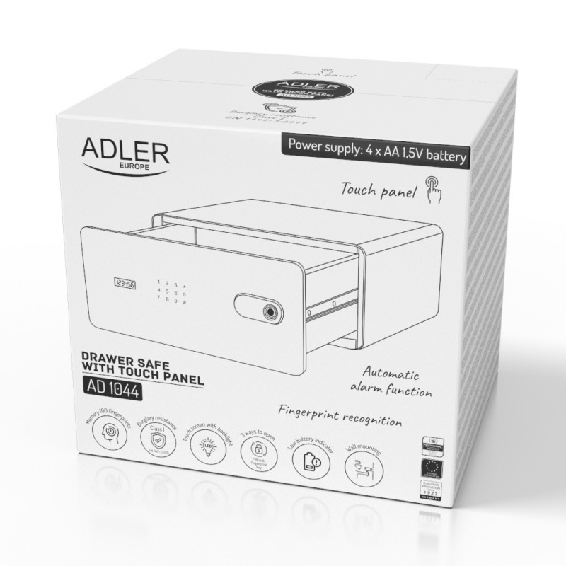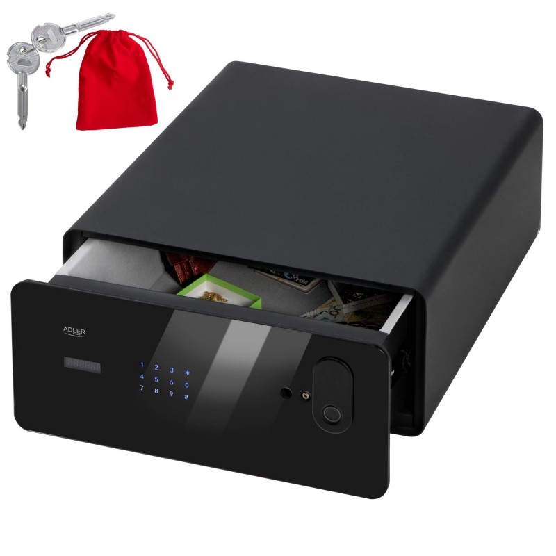 Protect your most valuable belongings with the Adler AD 1044 - a modern safe that combines high-level security, durable construction, and user-friendly technology. With its solid materials, touch panel, and biometric access, you can be sure that your valuables, documents, and personal items are always safe.