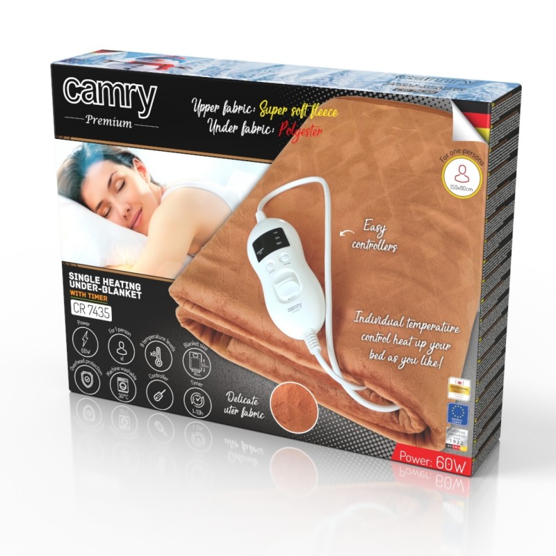 Etichete: Patura cu incalzire electrica Camry CR 7435, 150 х 80 cm, 8 nivele de temperatura, timer 1-10 ore, 60W
