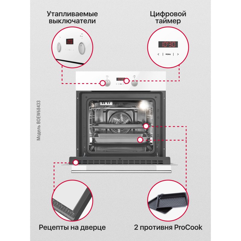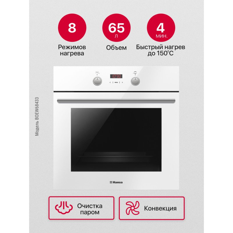 Духовой шкаф Hansa BOEW68433 сочетает в себе элегантный дизайн с продуманной эргономикой. Белый корпус со стеклянной панелью управления легко впишется в современную кухню. Объем камеры 65 литров подойдет для кулинарных задач любой сложности. Восемь режимов нагрева, включая конвекцию и размораживание, охватывают все основные способы приготовления. Система BakingPlus гарантирует превосходный результат при работе с выпечкой. Цифровое управление и утапливаемые переключатели делают процесс настройки легким, а панель — стильной и безопасной. Функция быстрого нагрева разогревает духовку до 150 градусов всего за 4 минуты. В комплект входят два фирменных противня ProCook, которые обеспечивают идеальную циркуляцию воздуха и защищают блюда от пригорания. Дверца с тройным остеклением эффективно сохраняет тепло внутри и остается безопасной снаружи. Технология очистки паром Aqualytic минимизирует усилия по уходу: пар размягчает загрязнения, после чего их легко удалить. Рецепты на внутренней стороне дверцы служат удобным напоминанием о времени и температуре приготовления блюд. Хромированные направляющие надежно фиксируют противни и легко моются. Этот духовой шкаф — разумный выбор для аккуратной и эффективной кухни.