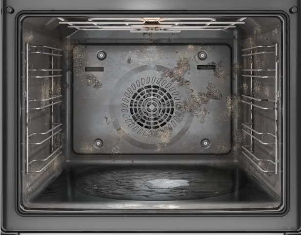 Cuptorul tau este usor murdar si are nevoie de o curatare rapida? Doar pune aproximativ 400 ml de apa cu o picatura de detergent lichid in partea de jos a cavitatii cuptorului si selecteza programul de curatare adecvat. Sistemul de curatare ecologic inmoaie reziduurile arse, facandu-le mult mai usor de sters ulterior.